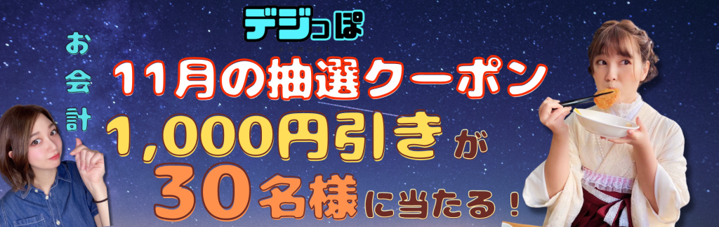 加盟店どこでも使えるお会計から【1,000円OFFクーポン】が30名に当選★